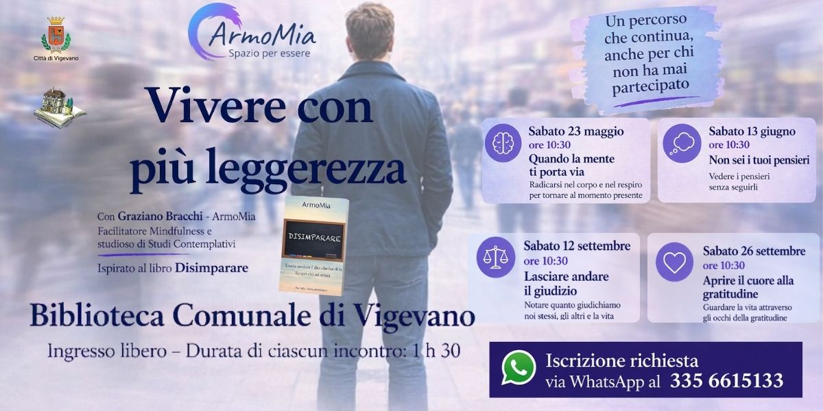 Quattro incontri pensati come uno spazio accessibile e concreto per fermarsi, osservare e portare più presenza nella propria vita quotidiana. Primo incontro: 23 maggio 2026