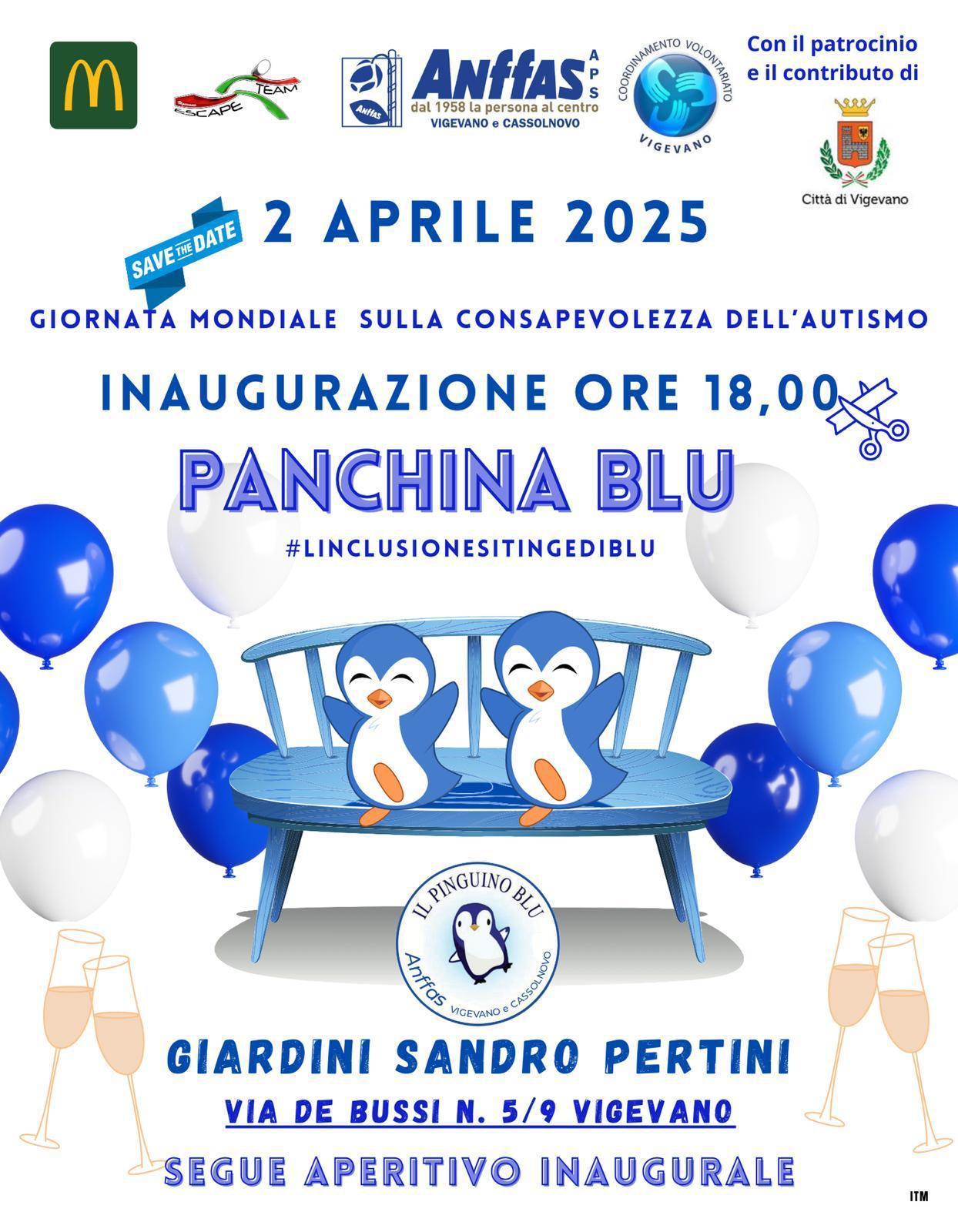 Oggi alle ore 18 vi aspettiamo ai giardini Sandro Perini per l’inaugurazione della prima panchina blu della Lomellina che rappresenta l’impegno quotidiano per una società più inclusiva, in cui tutti possano sentirsi accolti, compresi e valorizzati.