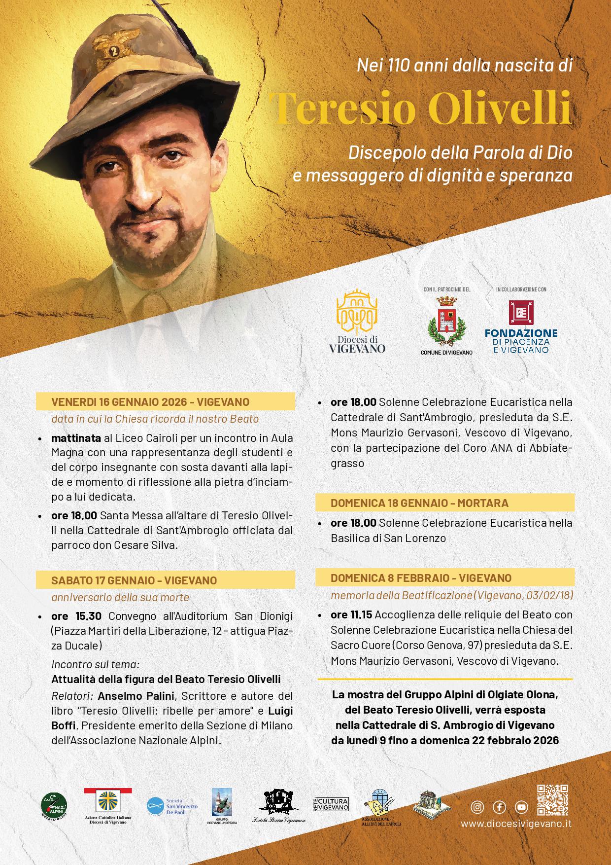 A seguire, ore 18:00, Duomo di Vigevano, Solenne Celebrazione Liturgica in onore del Beato Teresio Olivelli con il Vescovo di Vigevano, Mons. Maurizio Gervason