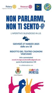 Rotary Club Vigevano Mortara e il Rotaract Vigevano Lomellina , in collaborazione con ENS Pavia, FAND Pavia e il Comune di Vigevano e la partecipazione di UGART, organizzano un aperitivo silenzioso in LIS – la Lingua dei Segni Italiana.