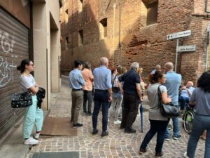 Il percorso proposto ha previsto la visita dell’ex Macello, del lascito Pensa, dell’ex Carcere, del tribunale e del Palazzo Riberia; ogni luogo è stato l’occasione per considerazioni e approfondimenti sulla storia degli edifici e formulazioni di ipotesi per il loro recupero.