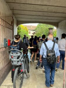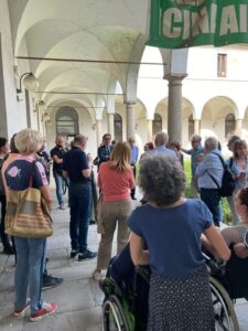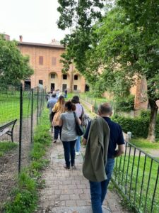 Entrando nella corte ciò che ha colpito i visitatori è stato la grandezza dell’area verde, in centro città, e le dimensioni degli edifici che compongono il complesso, oltre alle splendide cornici storiche ancora in buone condizioni. La visita del complesso ha aperto considerazioni circa il suo riutilizzo nell’ambito sociale, soprattutto come residenze per anziani autonomi o come connubio per anziani/bambini.