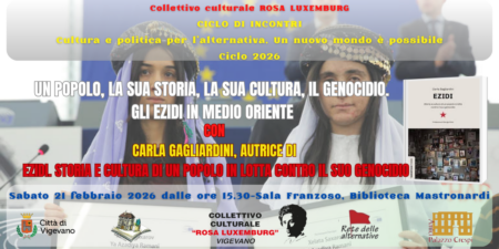 Presentazione del libro di Carla Gagliardini. Per il Secondo Ciclo di "Cultura e politica per l’alternativa. Un nuovo mondo è possibile". Sala Franzoso, Biblioteca Mastronardi, sabato 21 febbraio, ore 15.30.