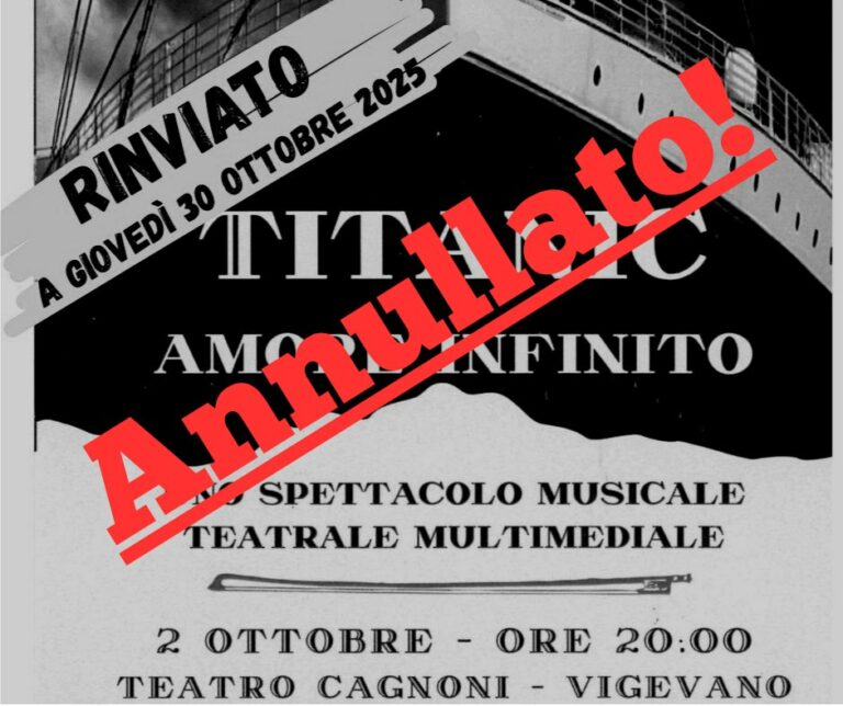 L’organizzatore Croce Rossa Italiana – Comitato di Vigevano ha comunicato l’annullamento della serata prevista per martedì 17 giugno 2025 presso il Civico Teatro Cagnoni per motivi indipendenti dalla sua volontà.