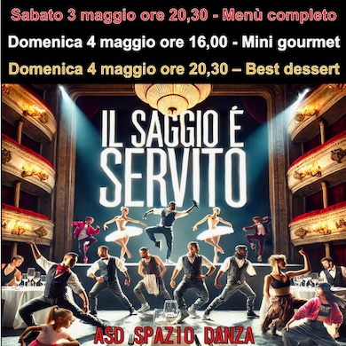 Sabato 3 maggio - ore 20.30 Domenica 4 maggio - ore 16.00 Domenica 4 maggio - ore 20.30.